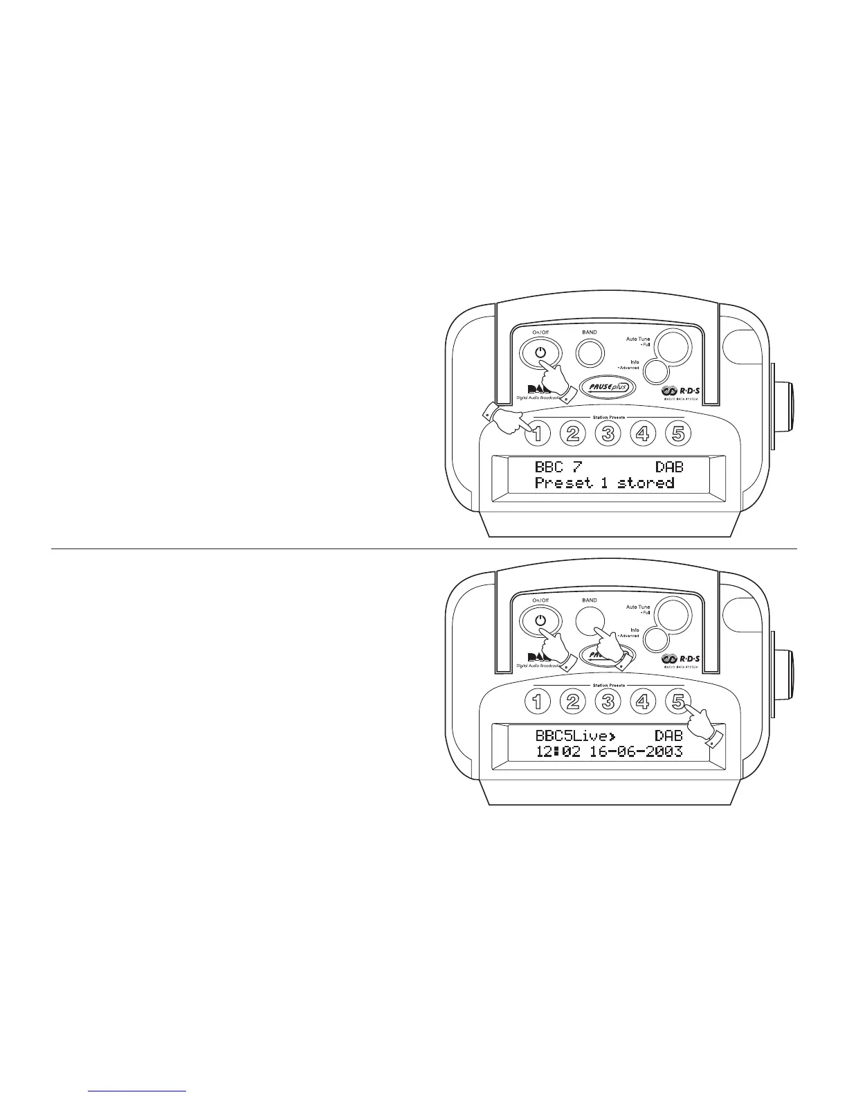 shows e.g. "Preset 1 stored". The station will be stored under the