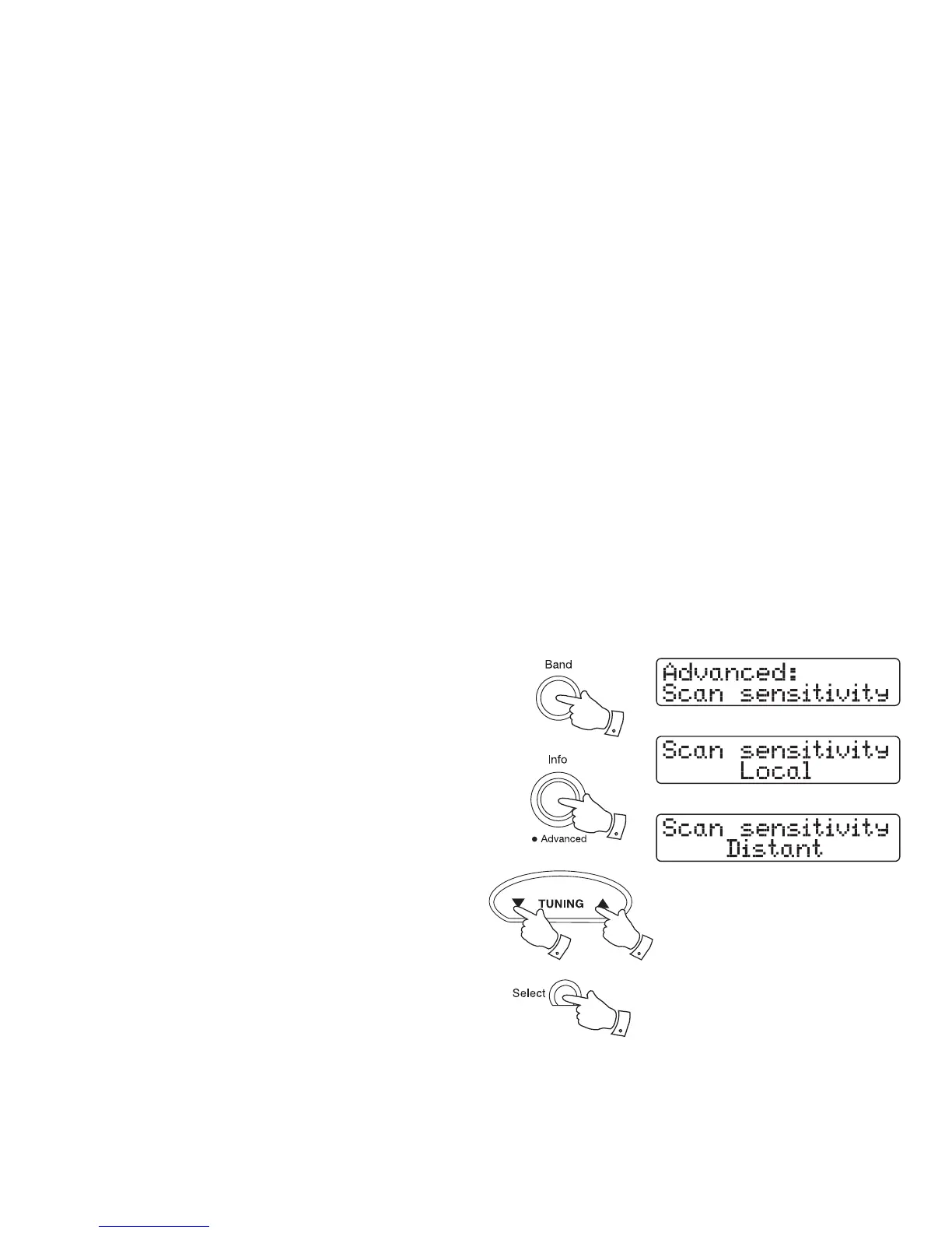 4. Press the Tuning Up or Down buttons until 'Scan sensitivity' appears