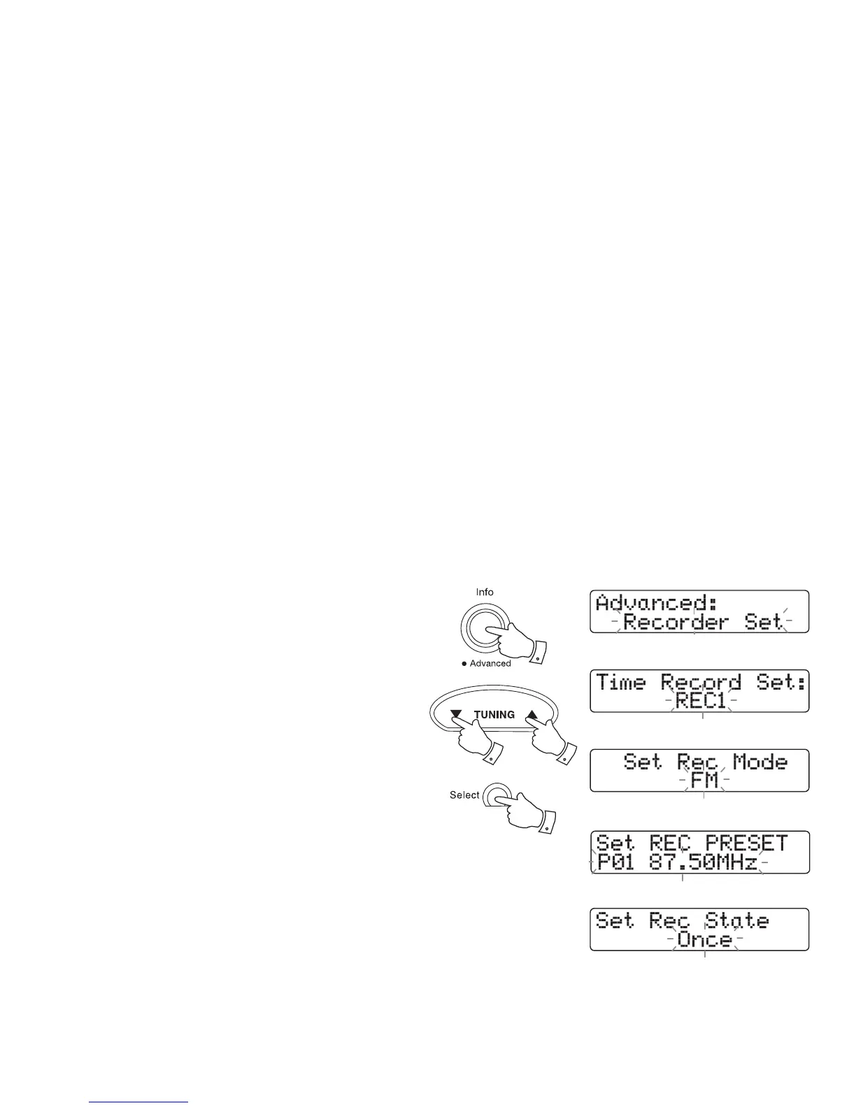 3. Press the Tuning Up or Down buttons until 'Recorder Set' appears