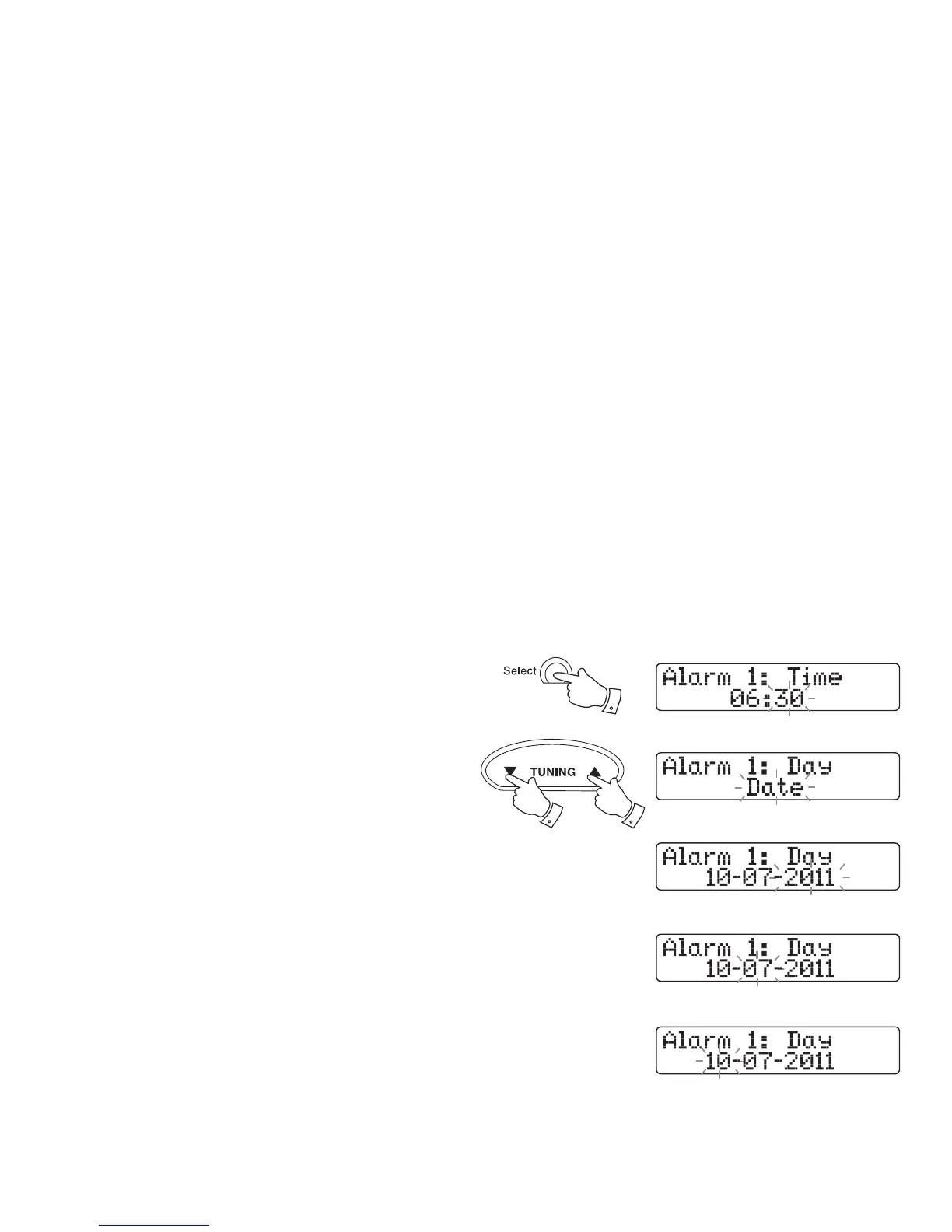 • If setting the alarm to the date option, continue with step 12 below.