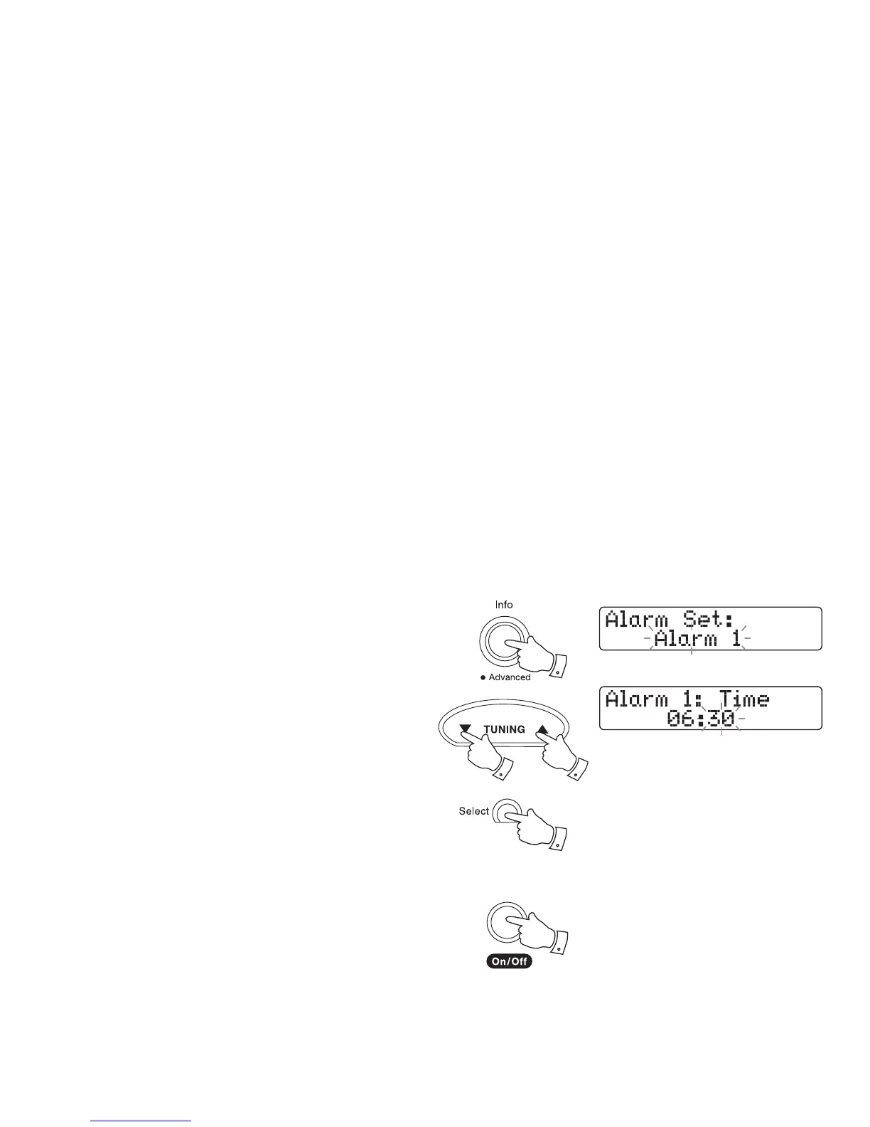 2. Press the Tuning Up or Down buttons until 'Alarm Set' shows on the