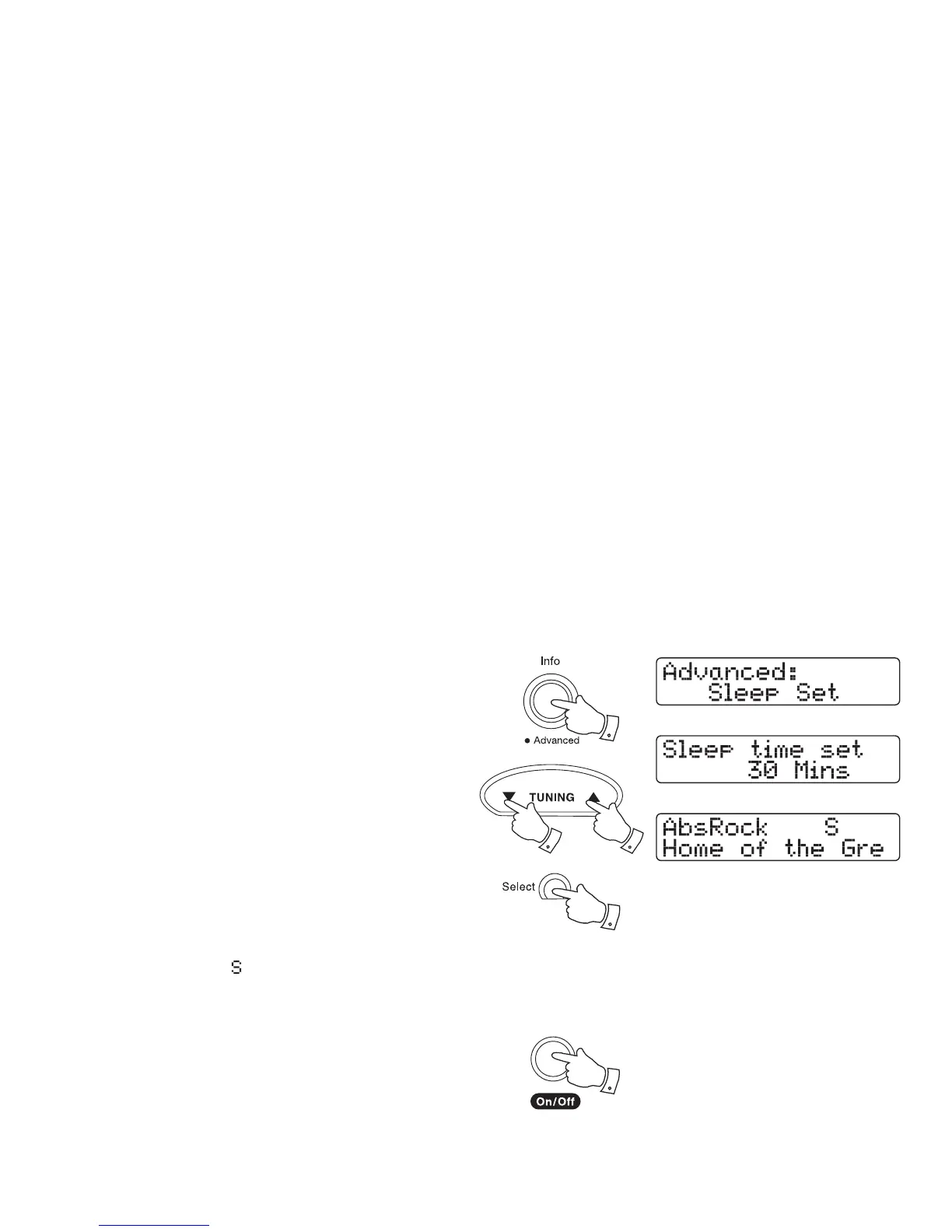 4. Press the Tuning Up or Down buttons to select desired sleep time.