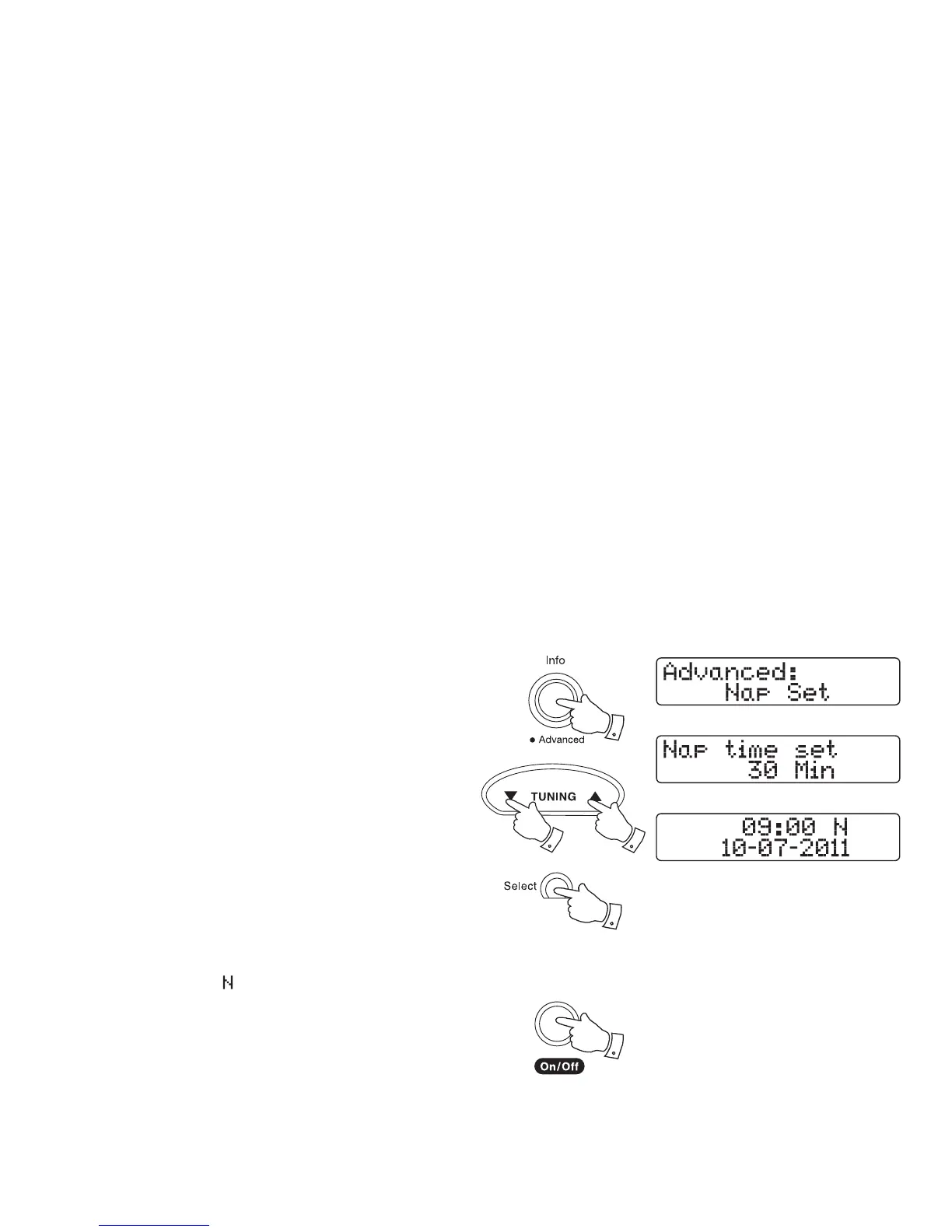 4. Press the Tuning Up or Down buttons to select desired nap time.