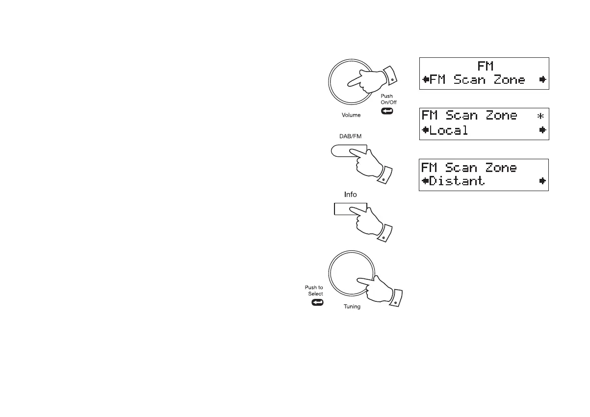 4. Rotate the Tuning control until the display shows 'FM Scan Zone' then