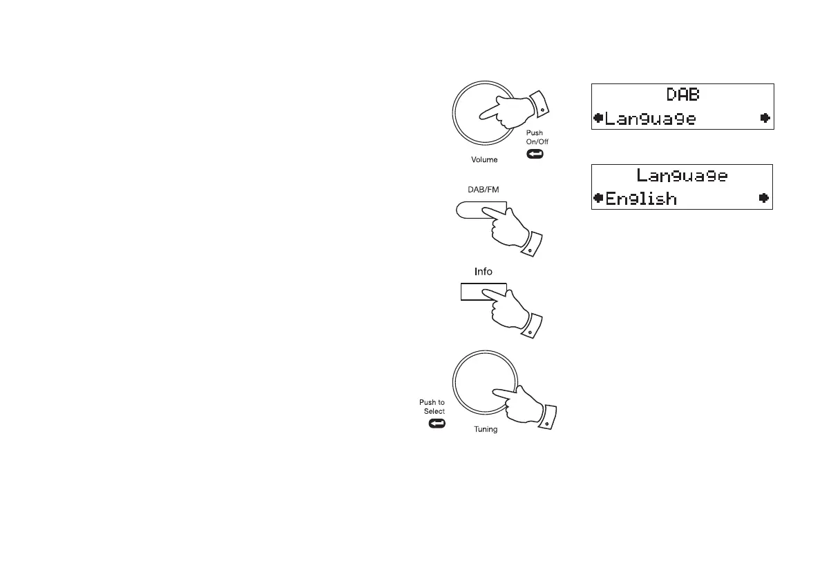 4. Rotate the Tuning control until the display shows 'Language'.