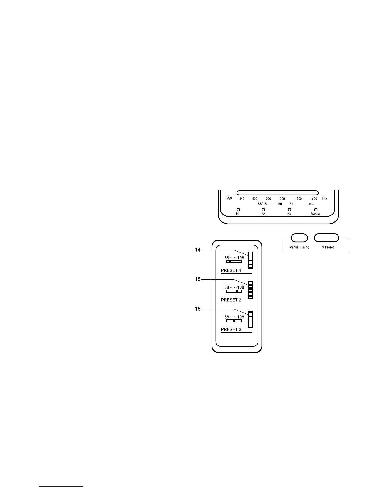 heard. Press the FM preset button (13) until the P1 Preset indicator is