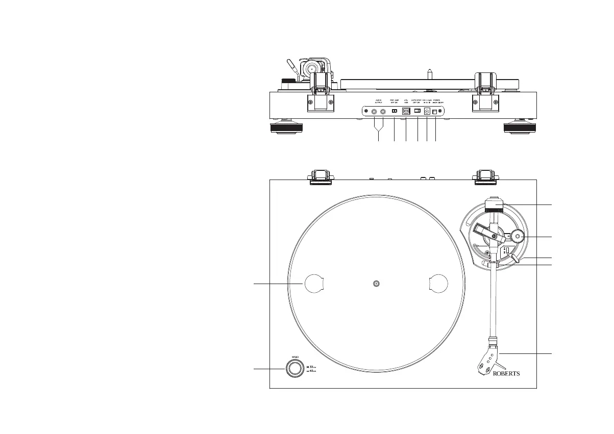 6. 33 / 45 r.p.m. speed switch