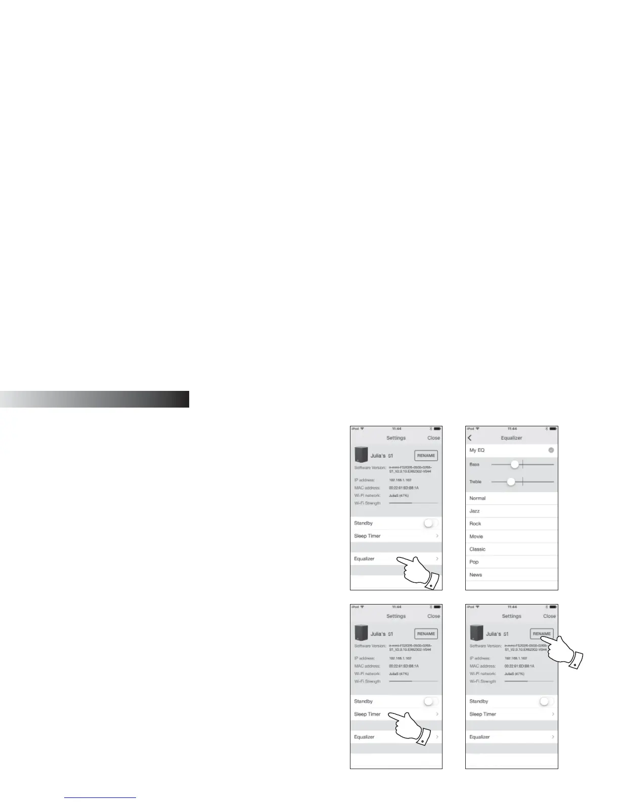 material that you are listening to. The S1 and S2 has a range of equaliser modes.