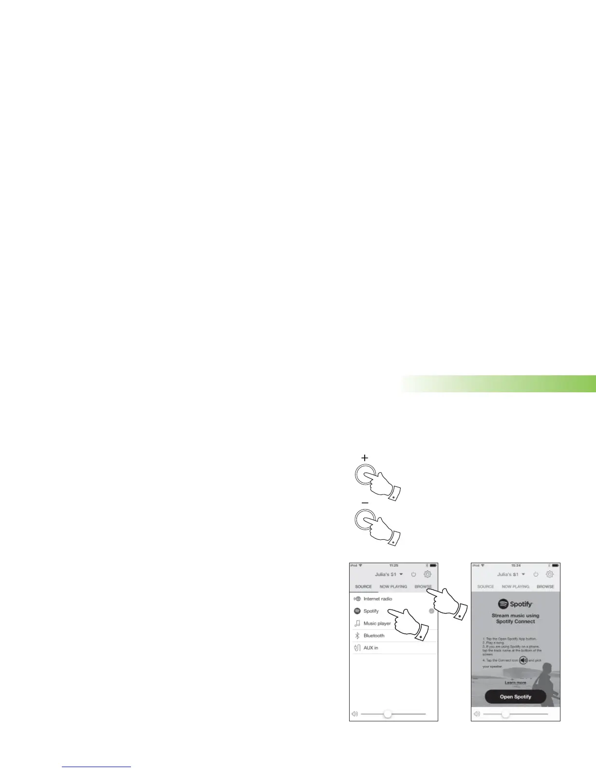 1. Ensure your speaker is switched on and select Spotify as the music source.