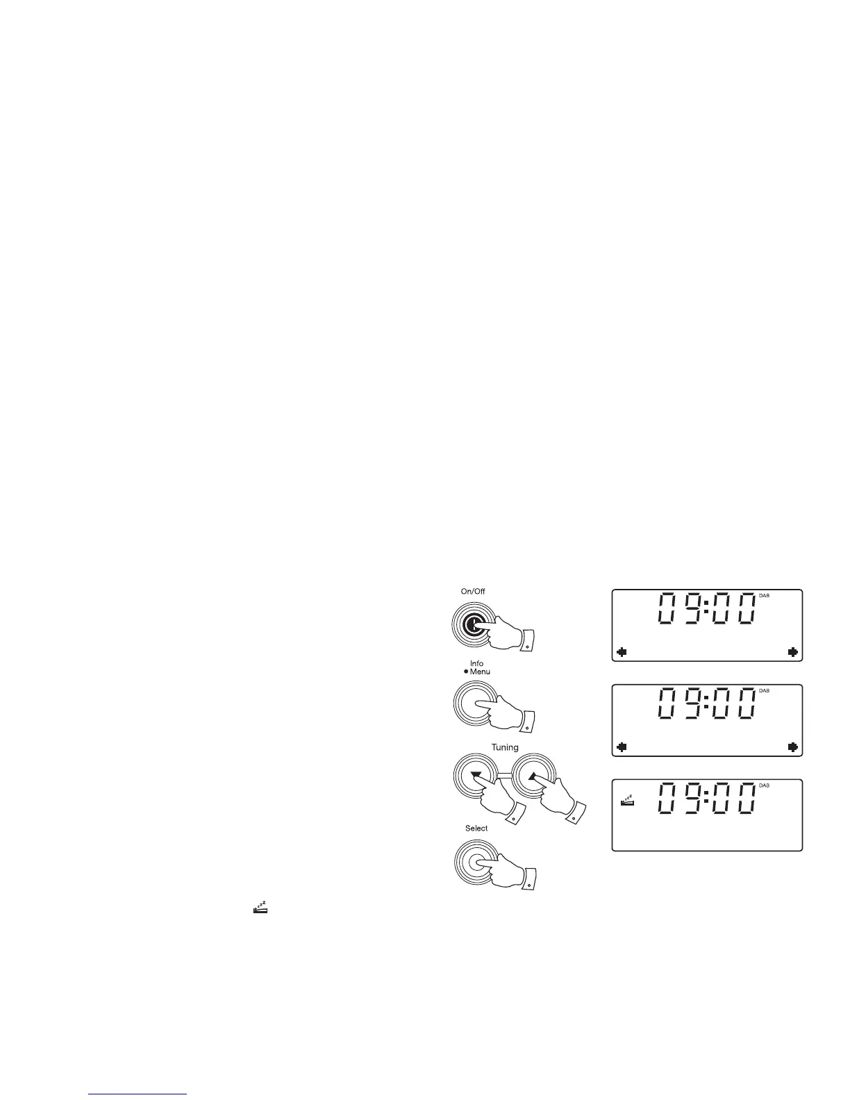 radio will switch off after the preset sleep time has elapsed.