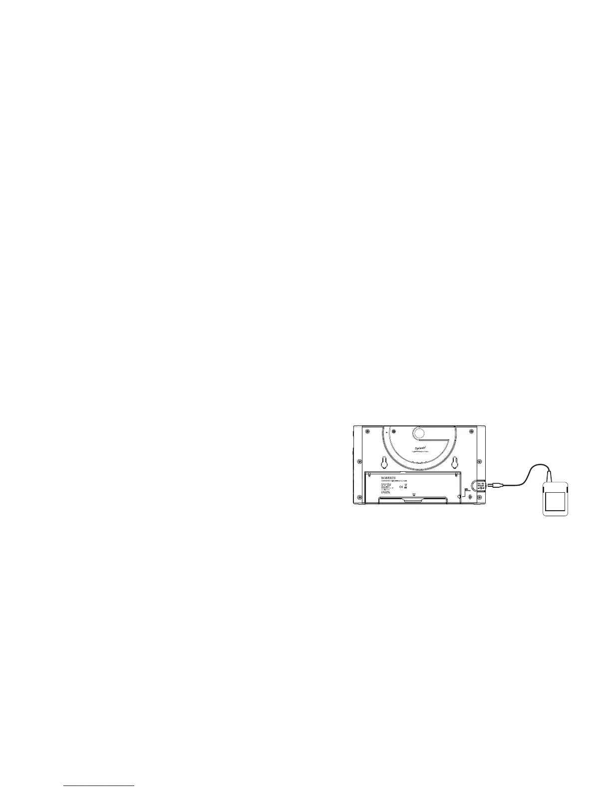 • IMPORTANT: The Splash radio should not be used with the mains