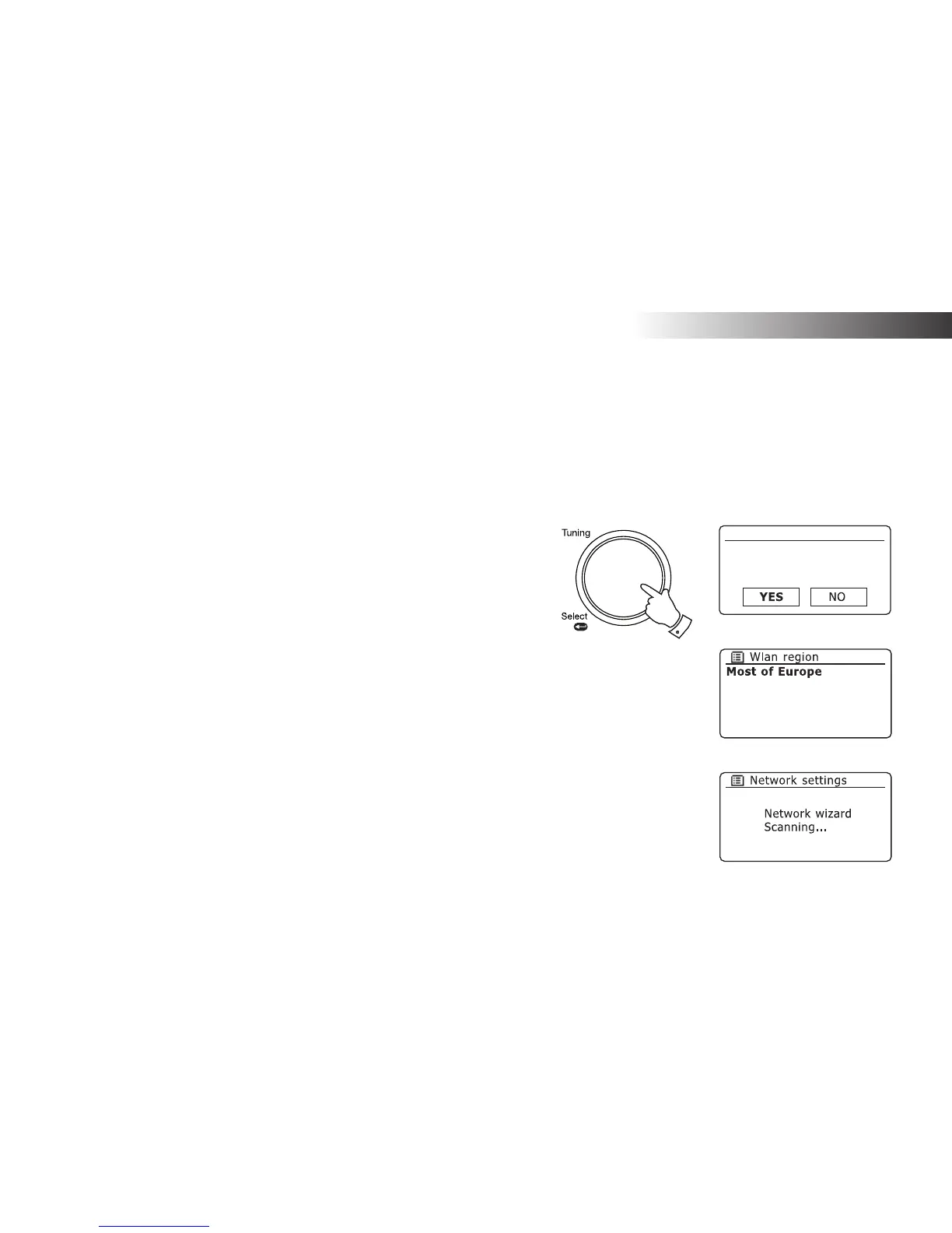 Rotate the Tuning/Select control to highlight the required region (for the UK