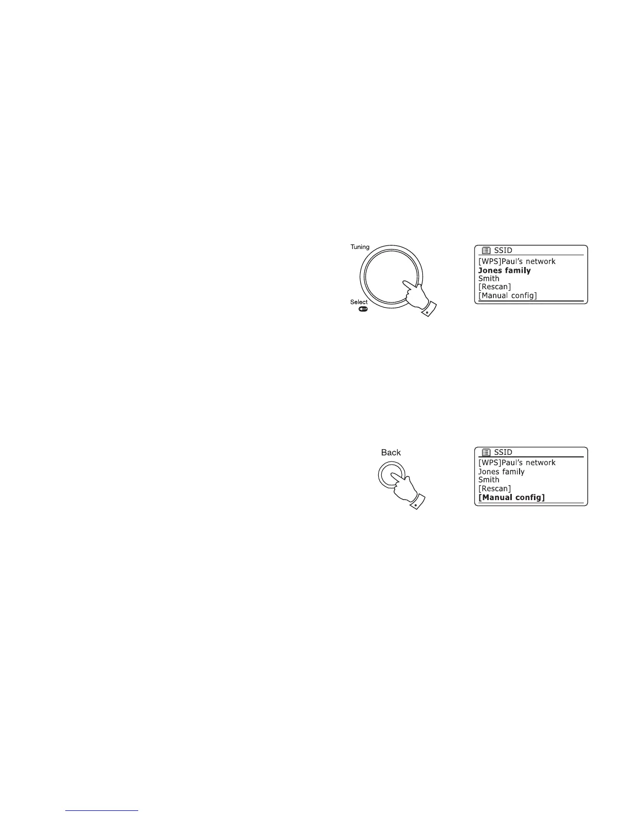 4. Rotate the Tuning/Select control to see the SSID for each wireless