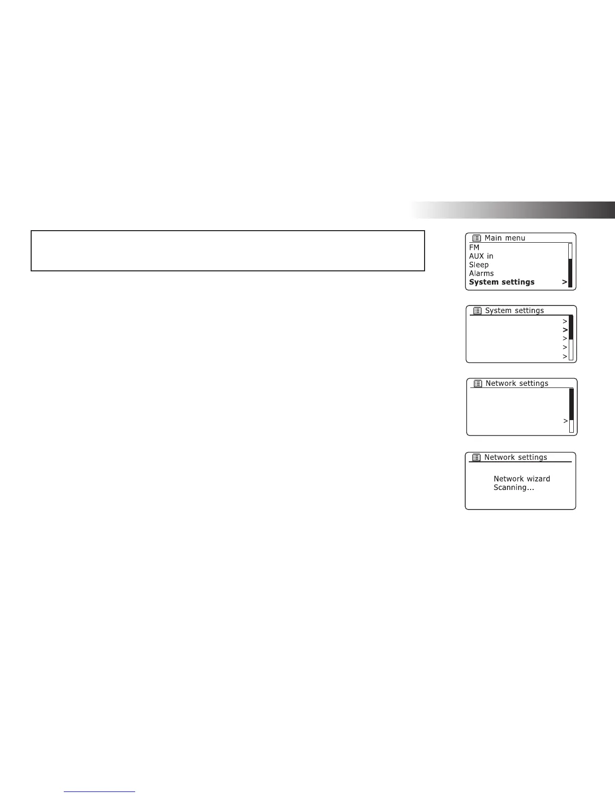1. From the Network settings menu select 'Network wizard'. This will present you with details of any WiFi