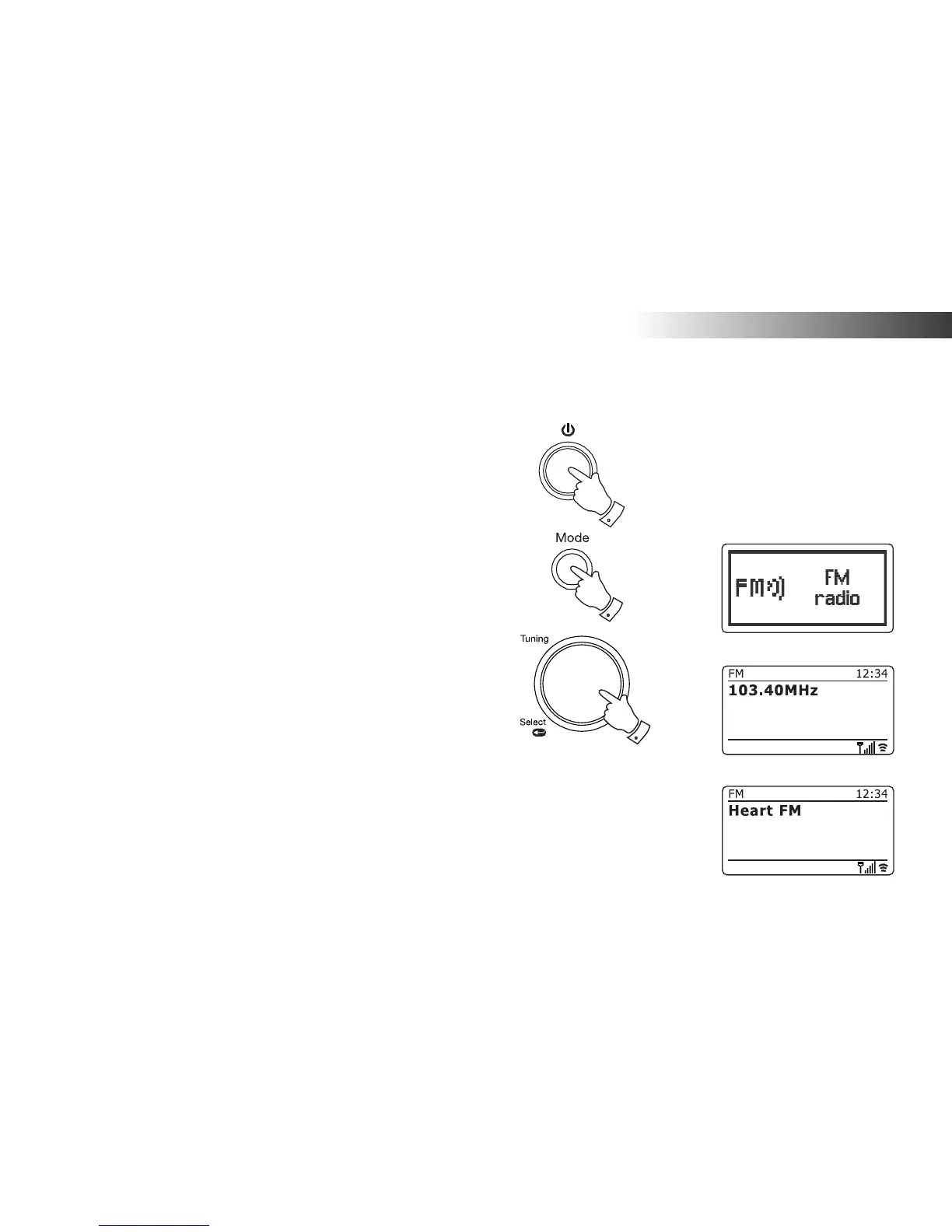 5. To fi nd more FM stations press the Tuning/Select control to repeat the