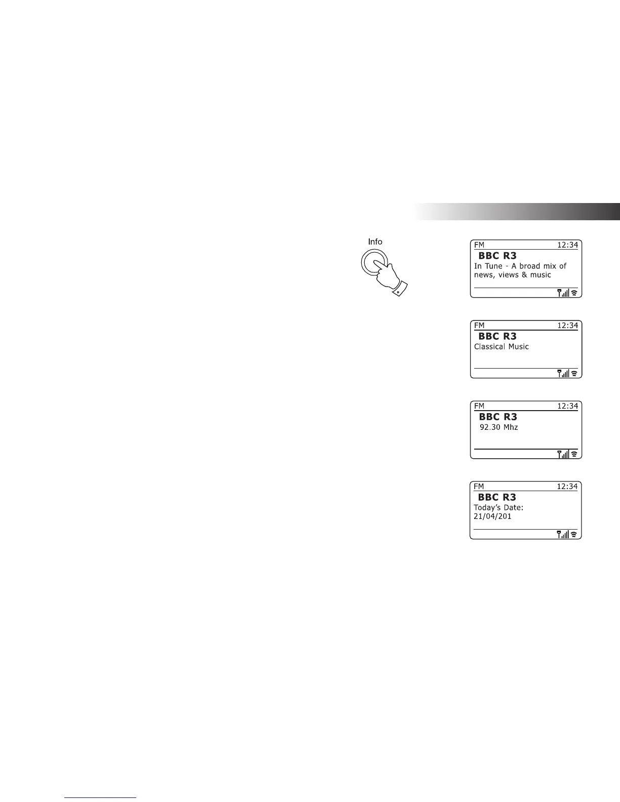 Your radio has a range of display options when in FM mode:-