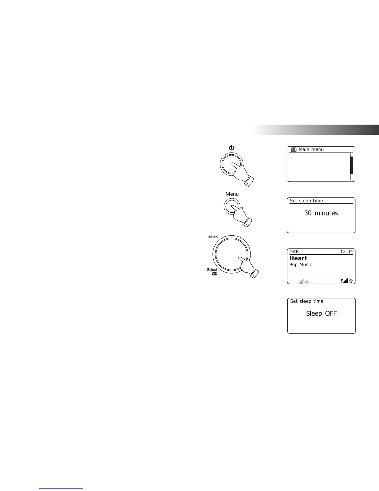 3. Rotate the Tuning/Select control until 'Sleep' is highlighted on the