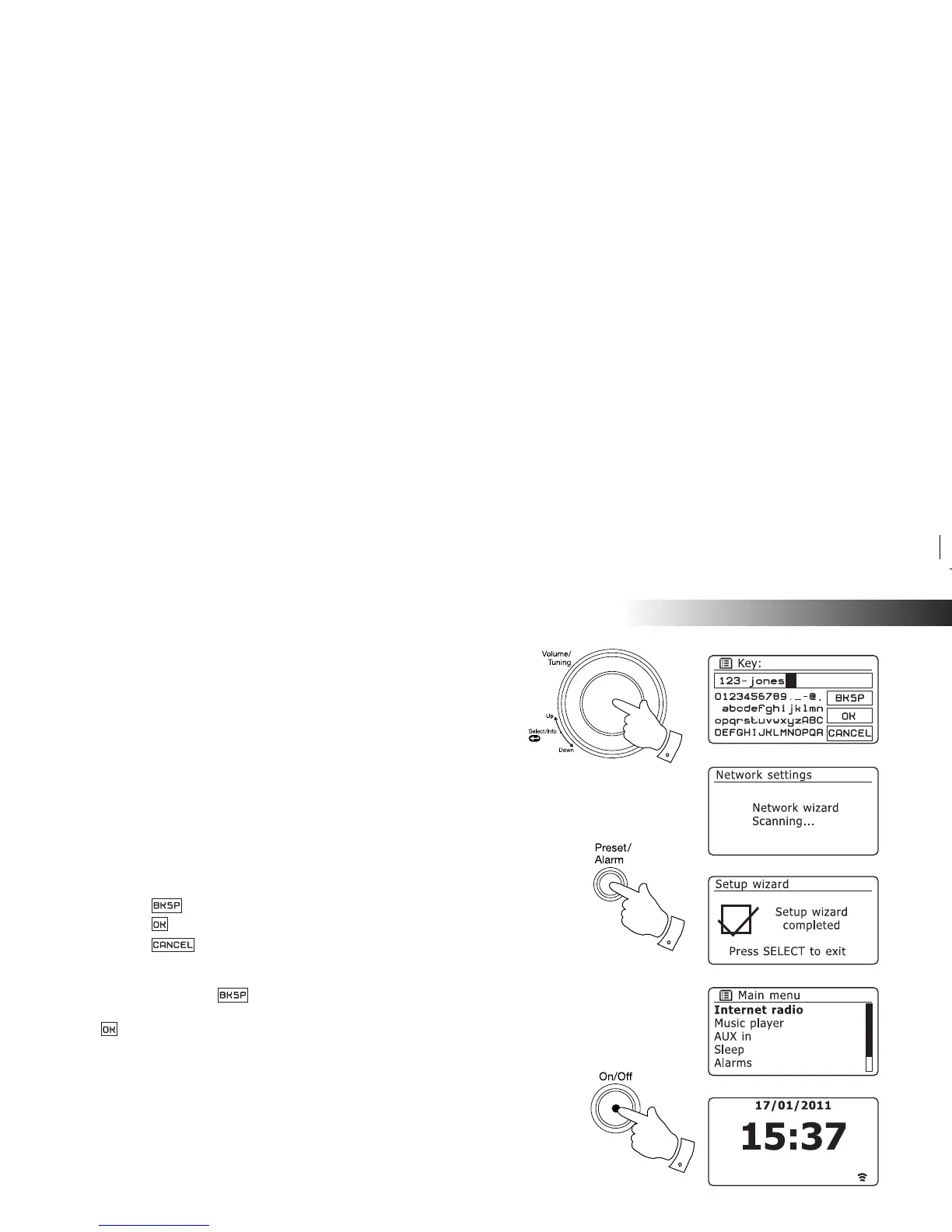 Tuning/Select control as needed. See also 'Text Entry' on page 9.