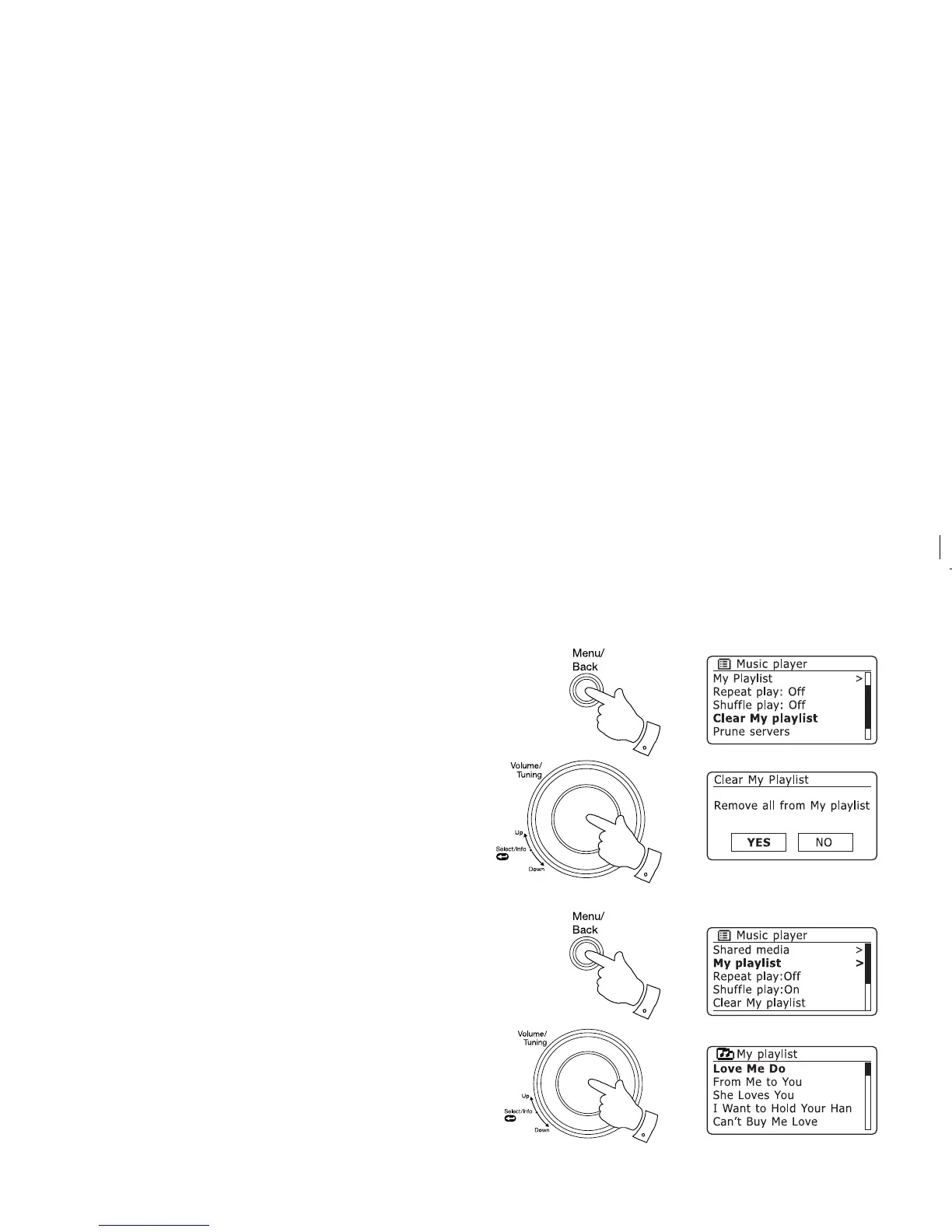 3. To clear the whole playlist rotate the Tuning/Select control until 'YES'