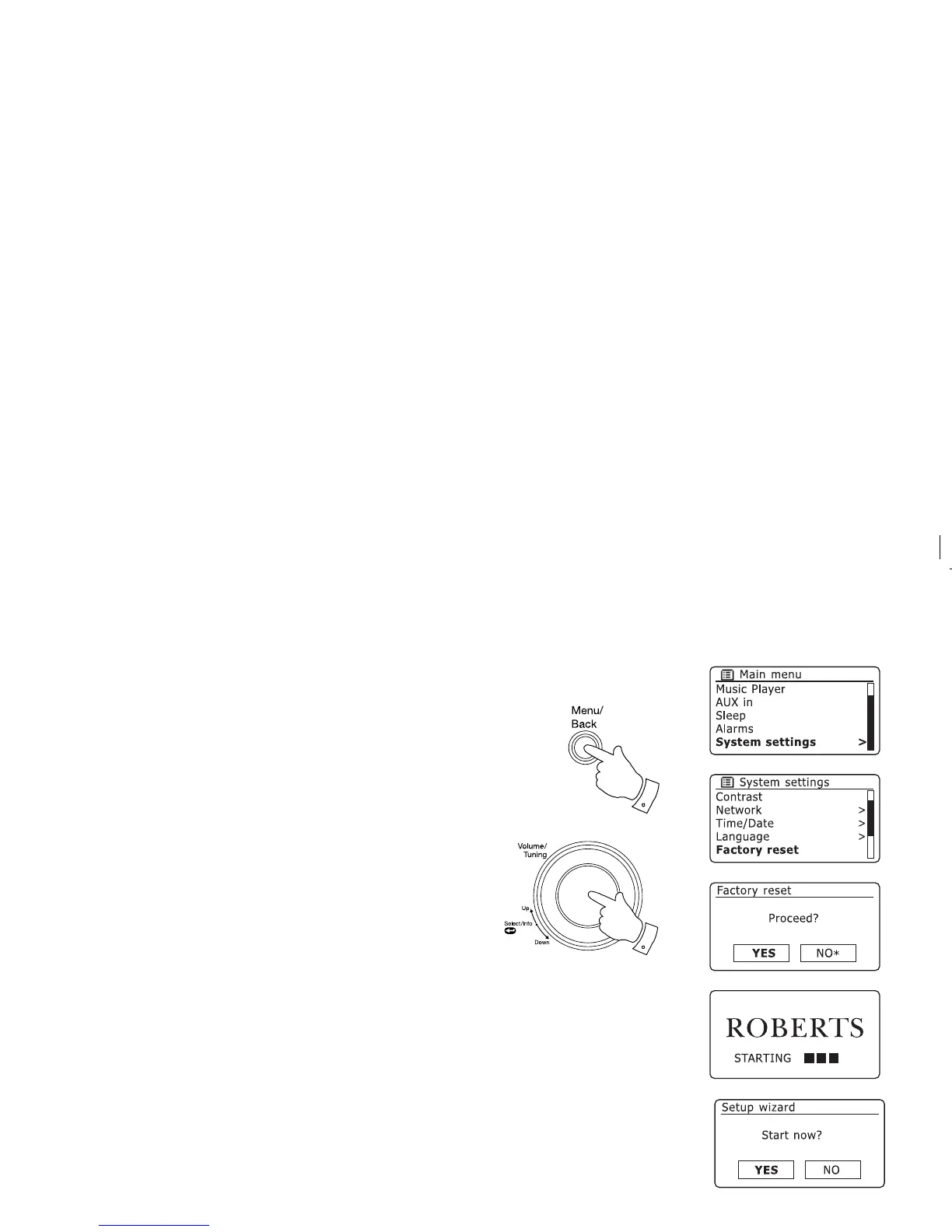 defaults, the clock and alarms will be reset. The radio will then launch