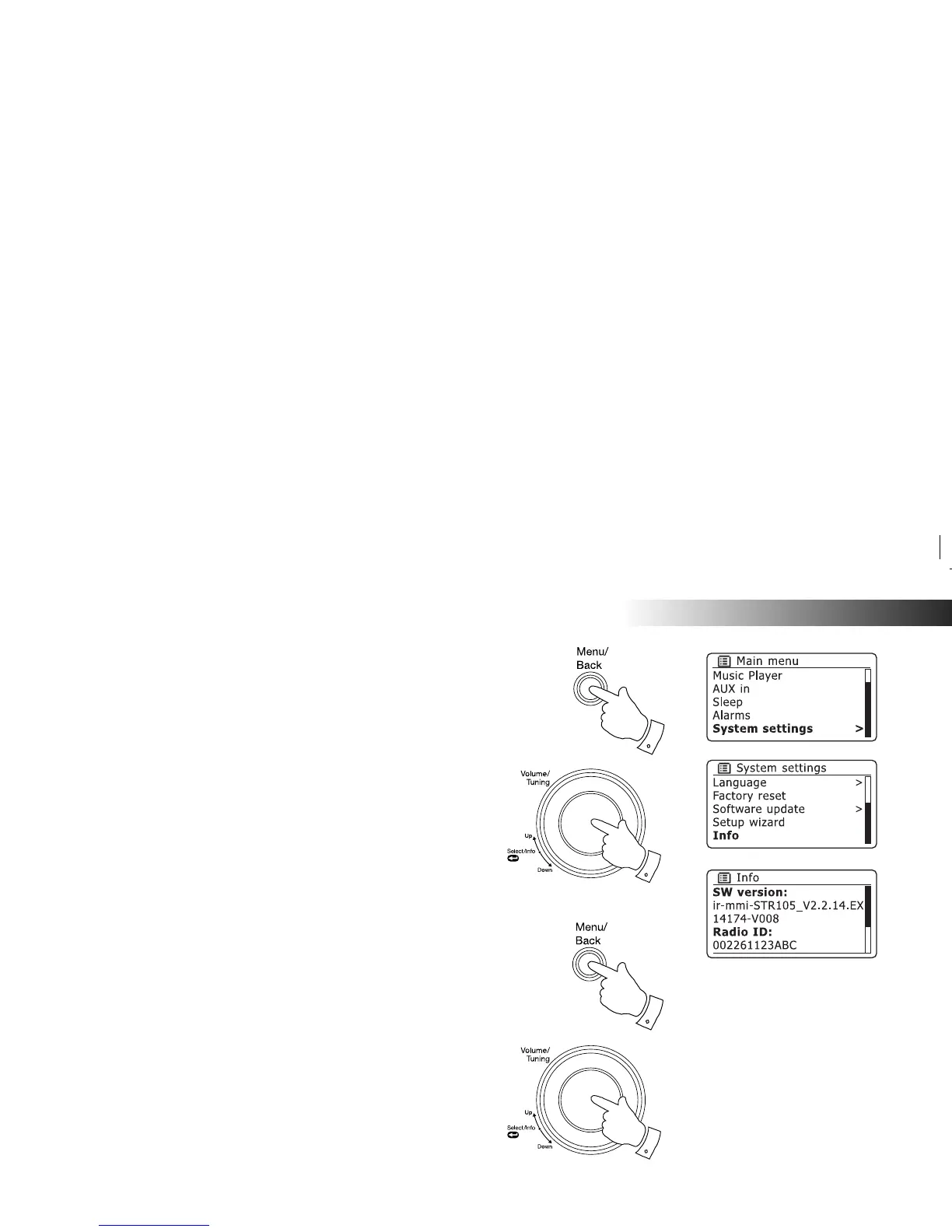 Press the control to display the software version and radio ID.