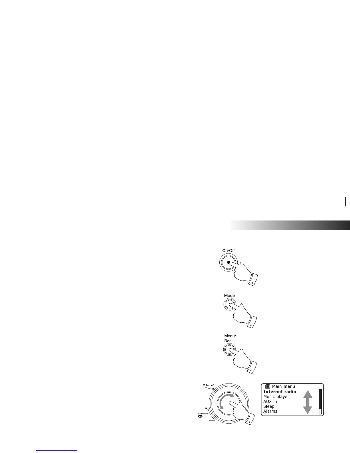 modes in turn: Internet Radio, Music Player and Auxiliary Input.