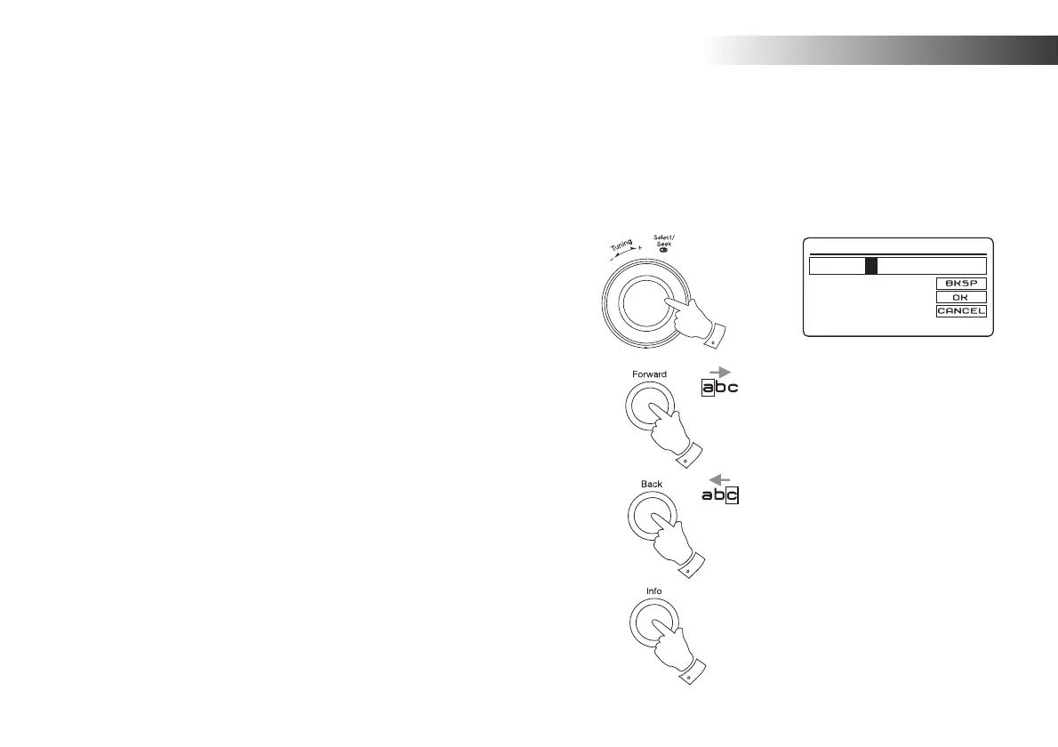 entering text for searches. When entering text you can use the Tuning/Select control alone or in conjunction with some of the buttons. The rotary