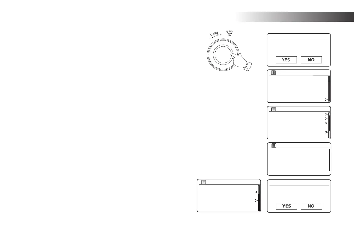 Rotate the Tuning/Select control to highlight the 'NO' option. Press the Tuning/