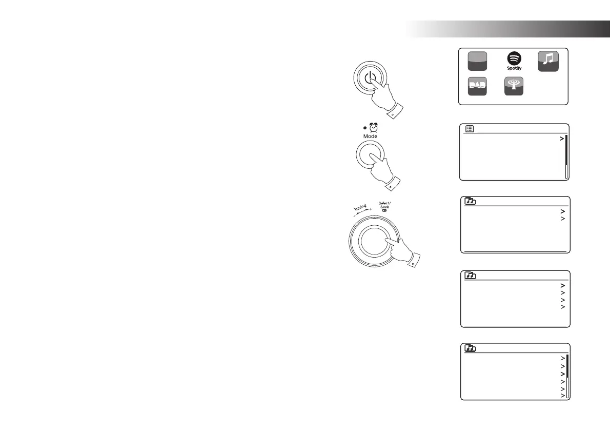 1. Press the On/Standby button to switch on the unit. Press the Mode