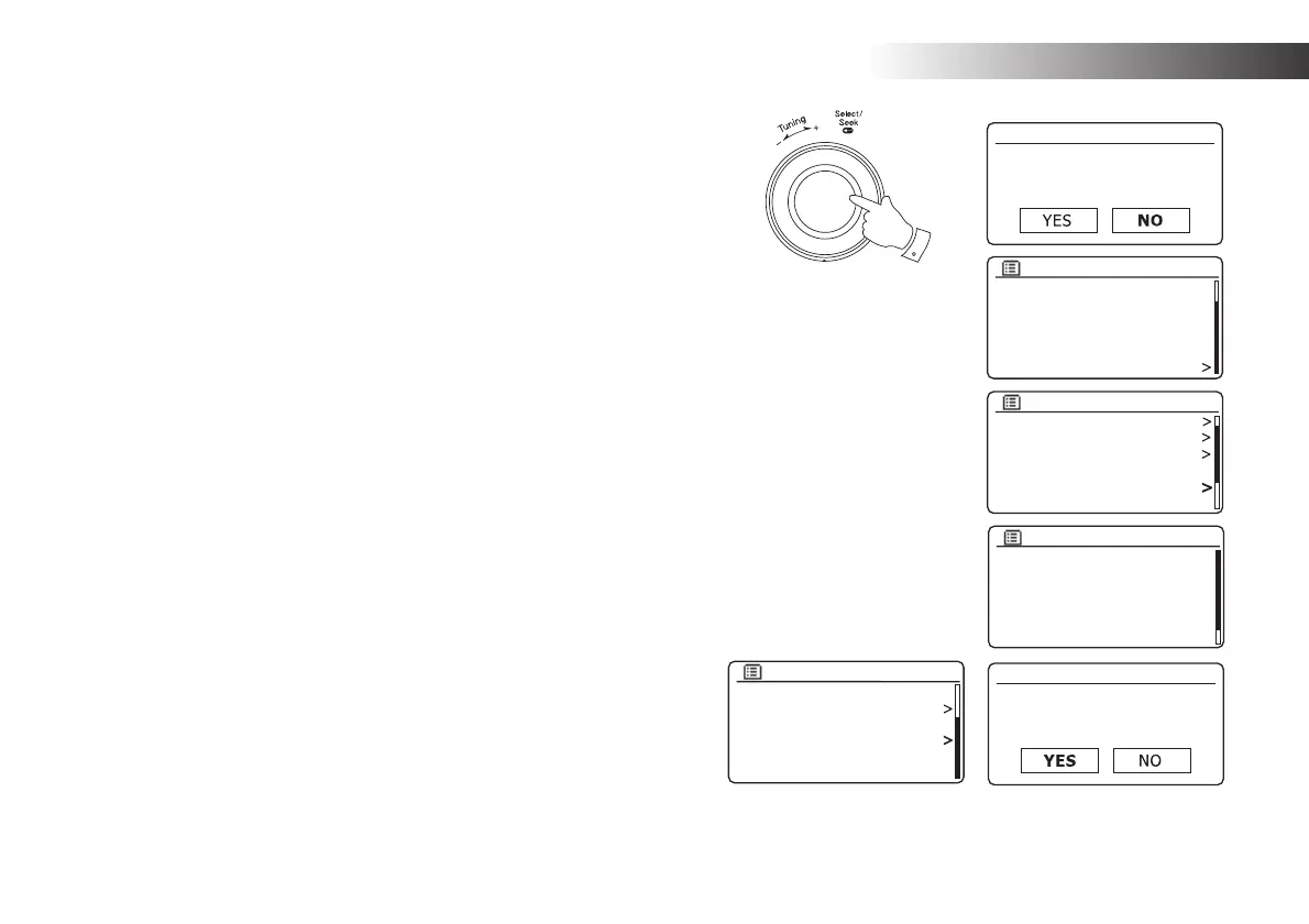 Rotate the Tuning/Select control to highlight the 'NO' option. Press the Tuning/