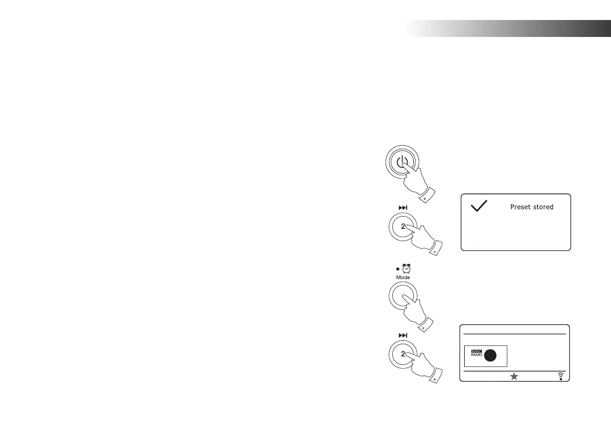 Preset button (1 - 5) until the display shows 'Preset stored'. The station will be stored