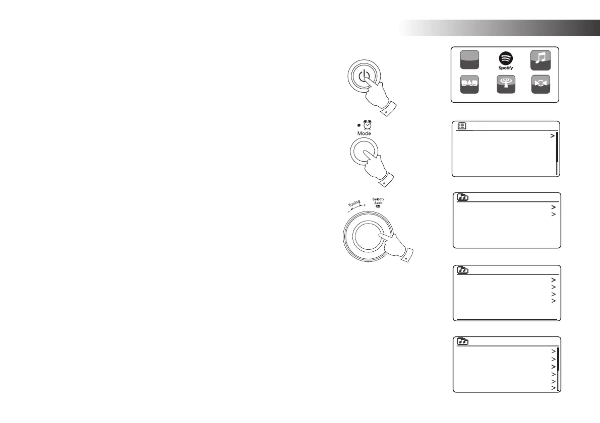 4. The radio will now list the media categories which are made available