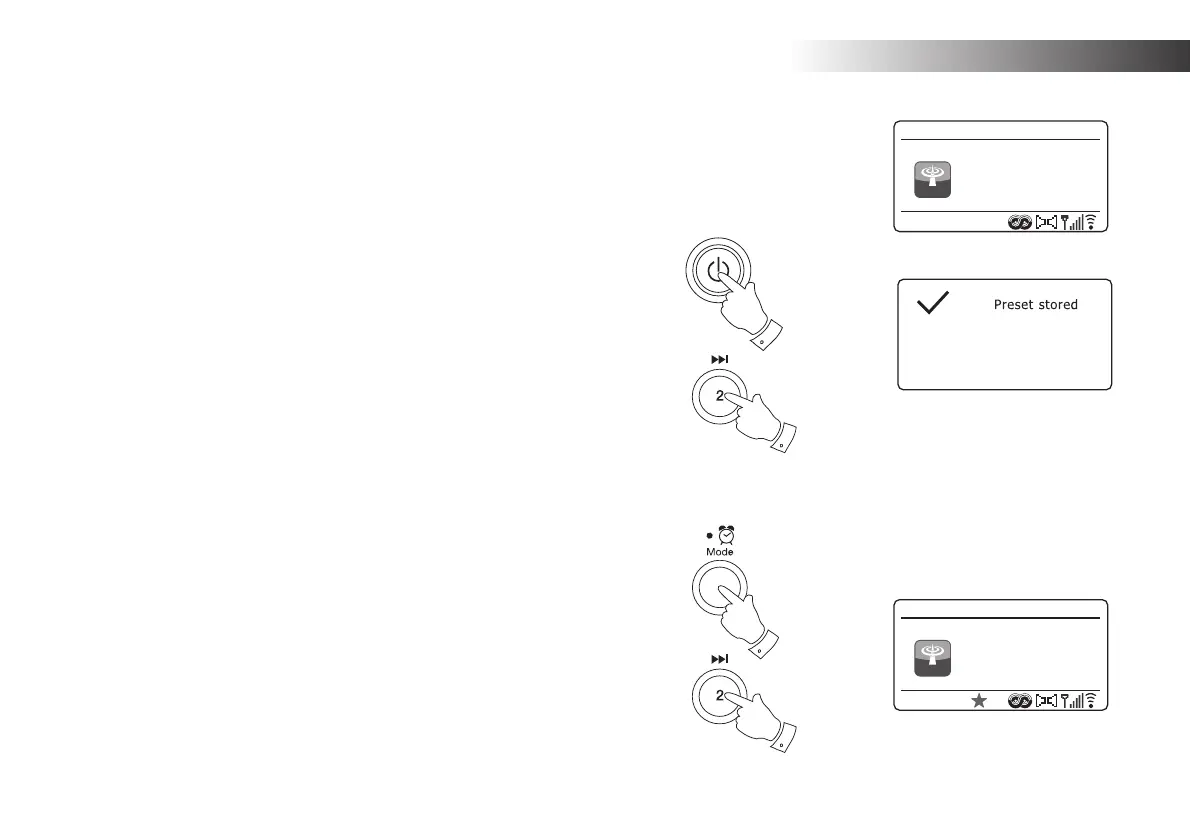 button (1 - 5) until the display shows 'Preset stored'. The station will