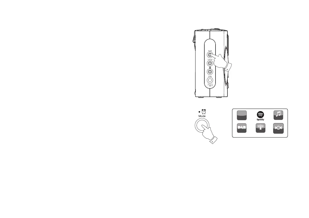 3. Press the Mode button until AUX in mode is shown on the display.
