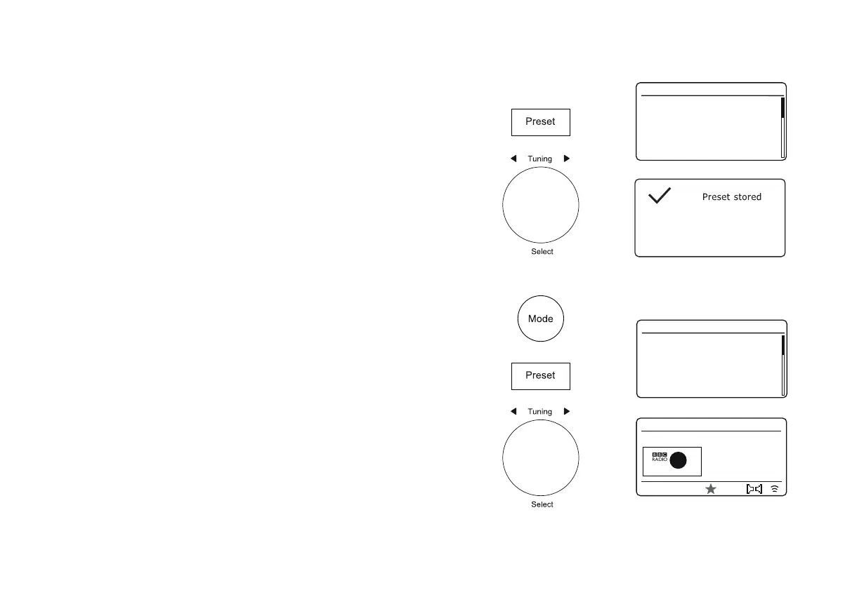 Tuning control to store the preset. 'Preset stored' will be shown on the