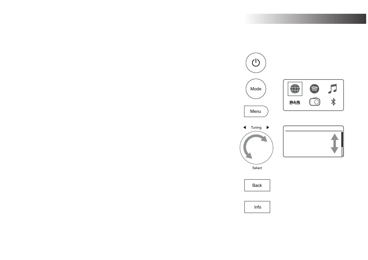 press the Mode button and then turn the Tuning/Select control clockwise or anti-clockwise to