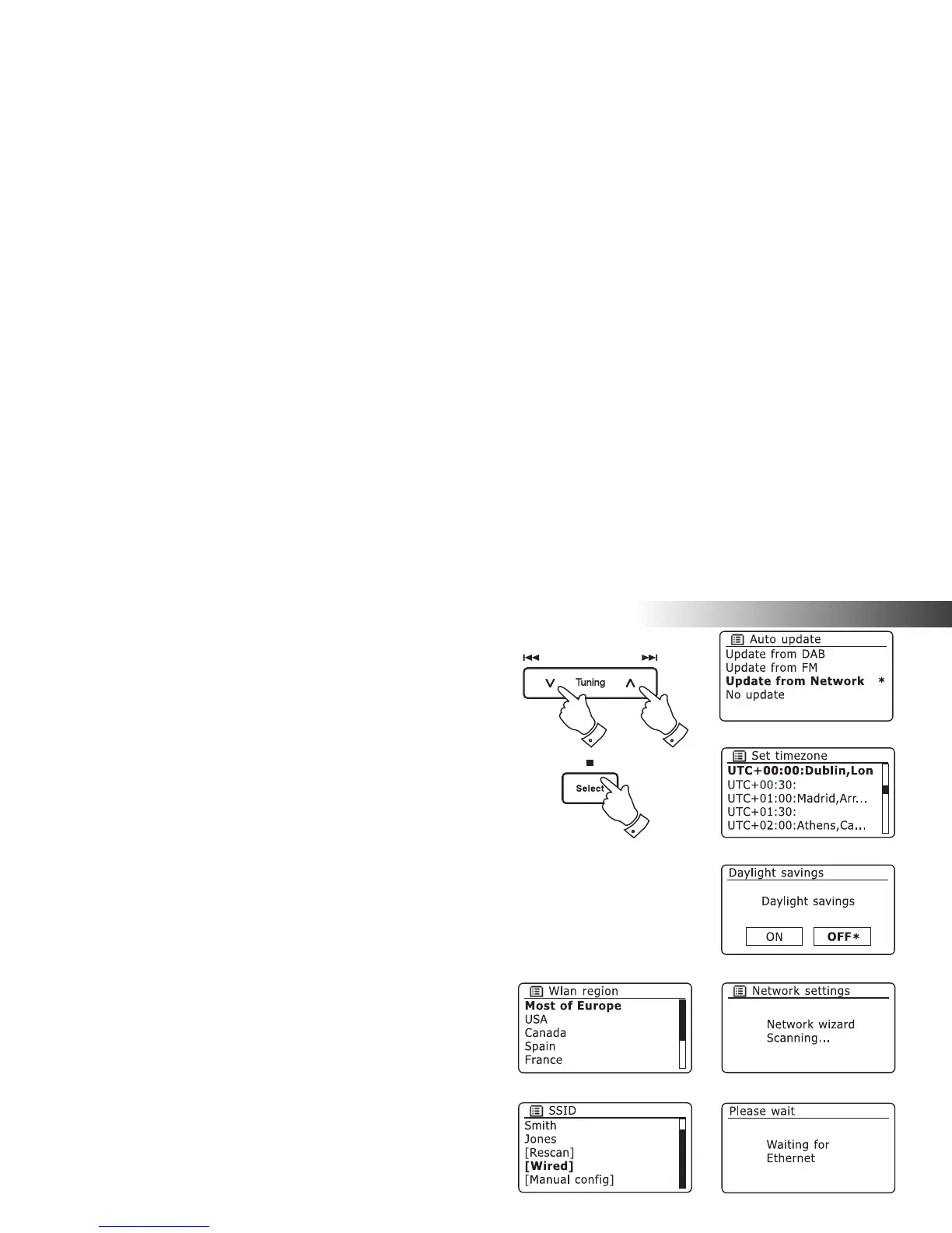 the clock. This can be updated from DAB or FM radio, from the Network, or