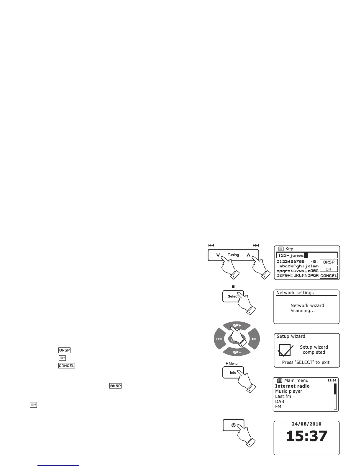 17. To enter the WEP or WPA key, characters are selected and entered using the