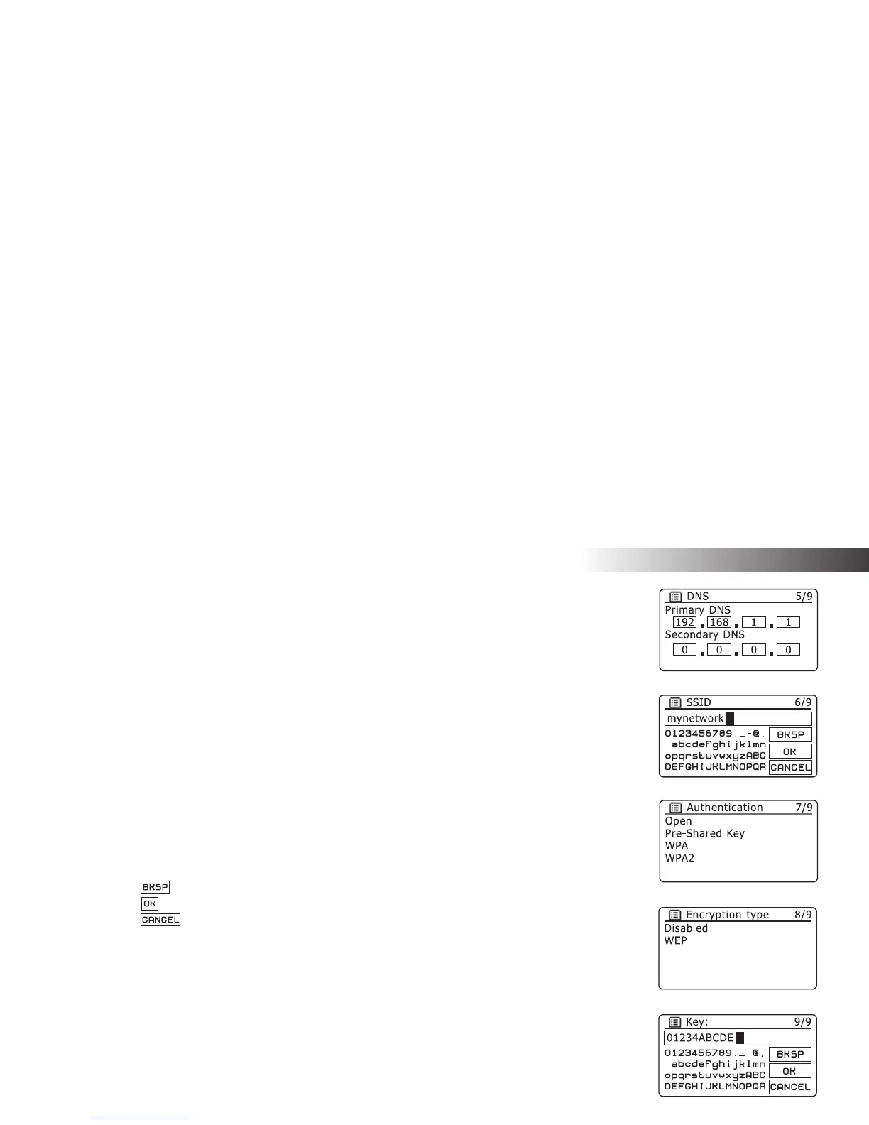 Do this as needed until the complete network name has been entered. The SSID setting is sensitive to