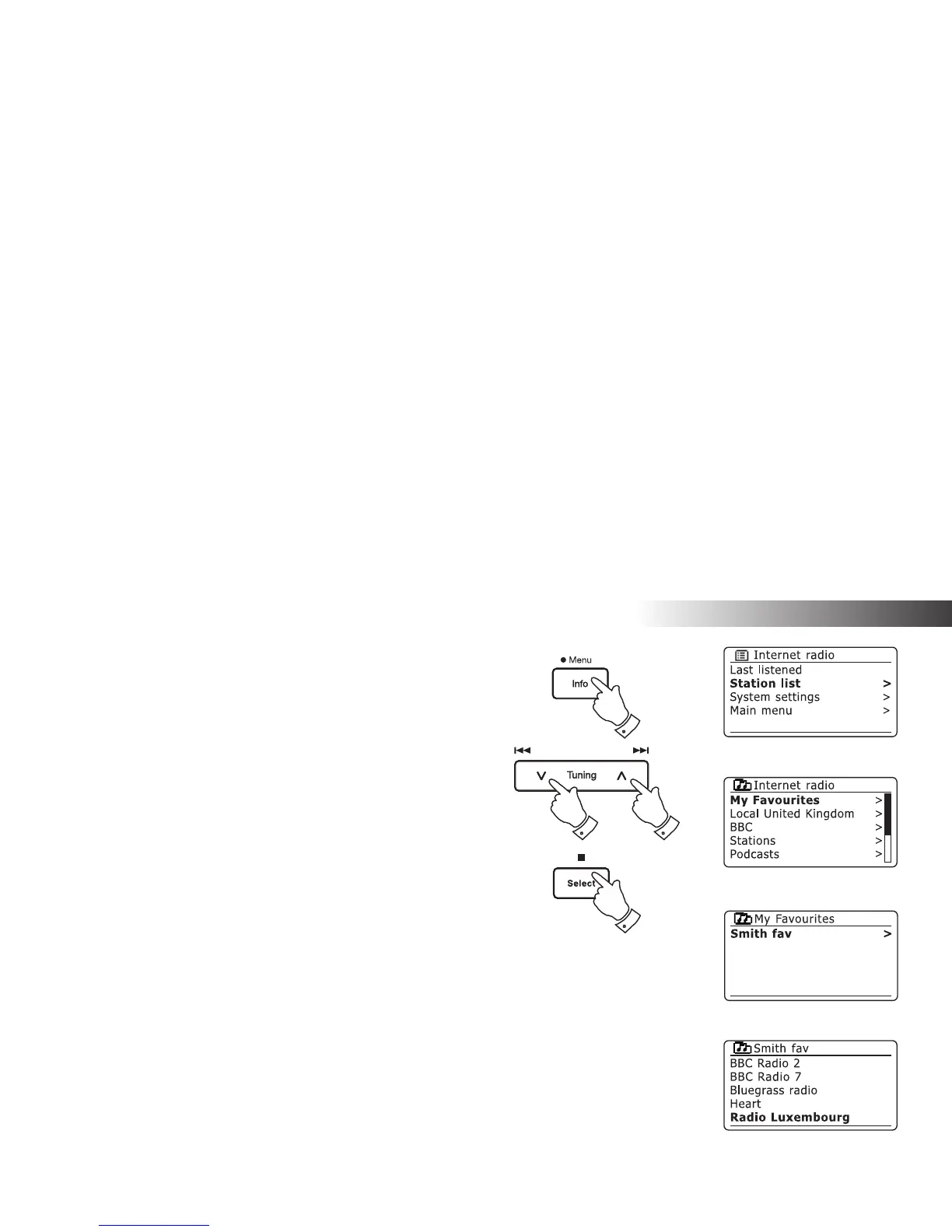 2. Press the Menu Up or Down buttons until 'Station list' is highlighted