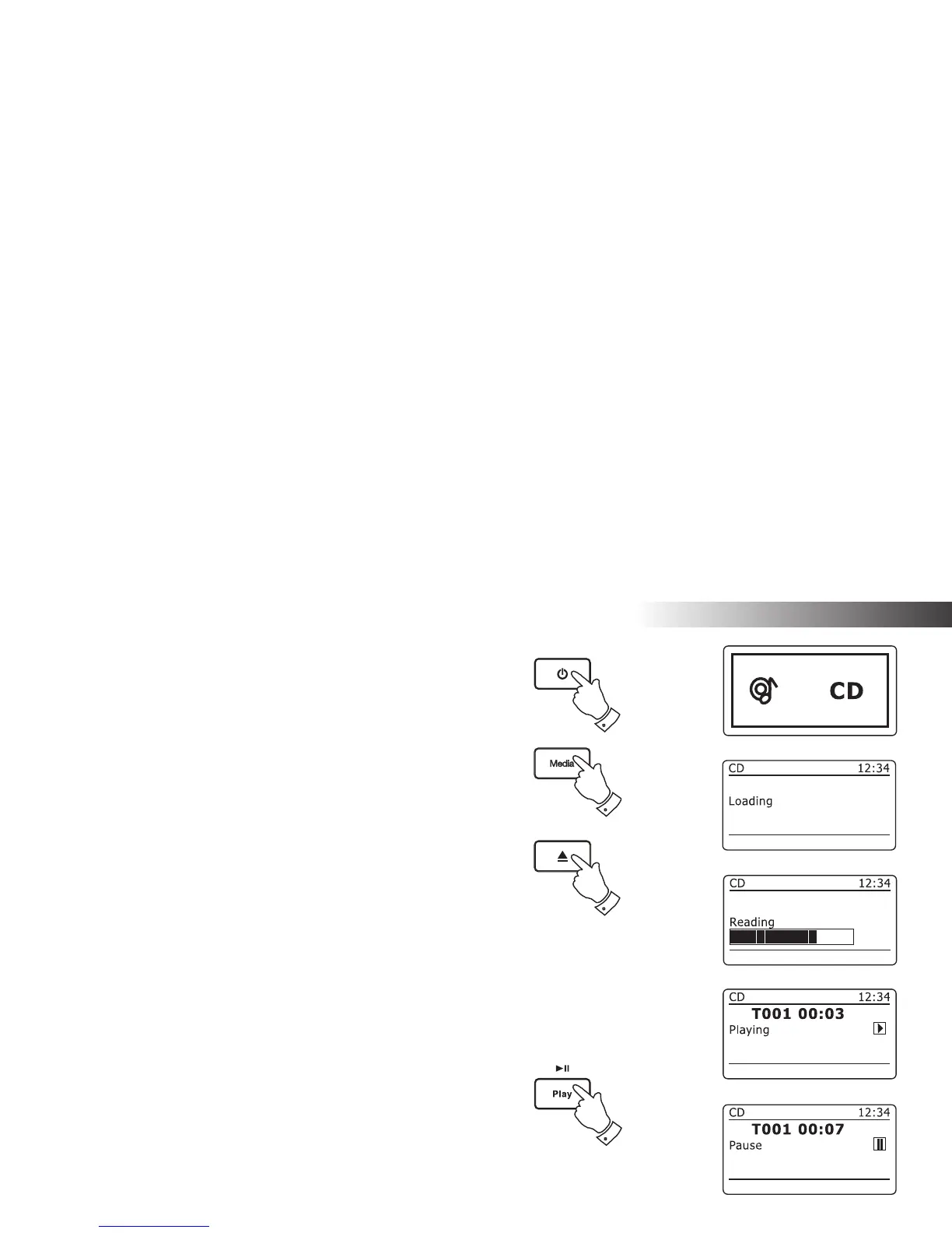2. To select the CD mode press the Media button until 'CD' shows on
