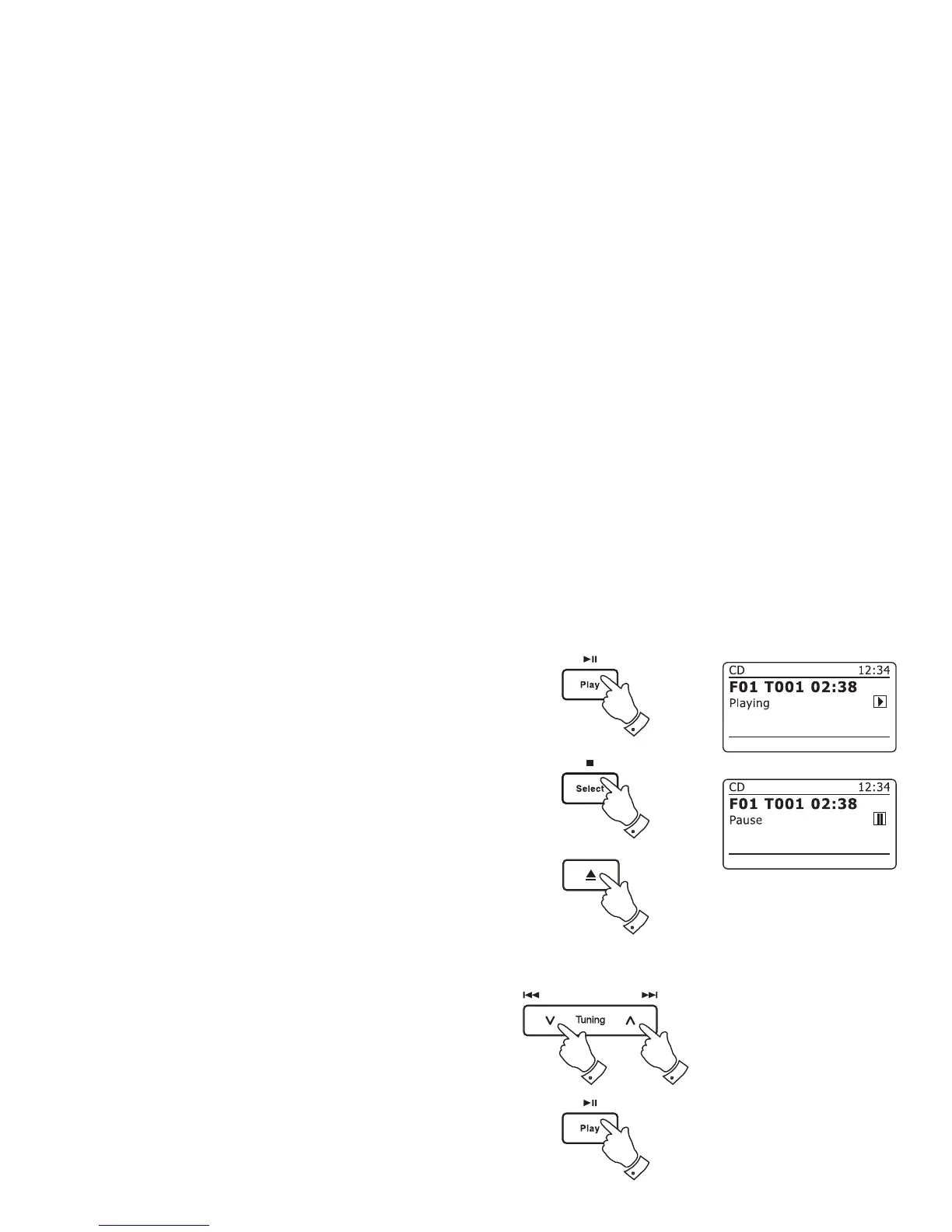 1. Press the Play / Pause button to start playing from the CD. The display