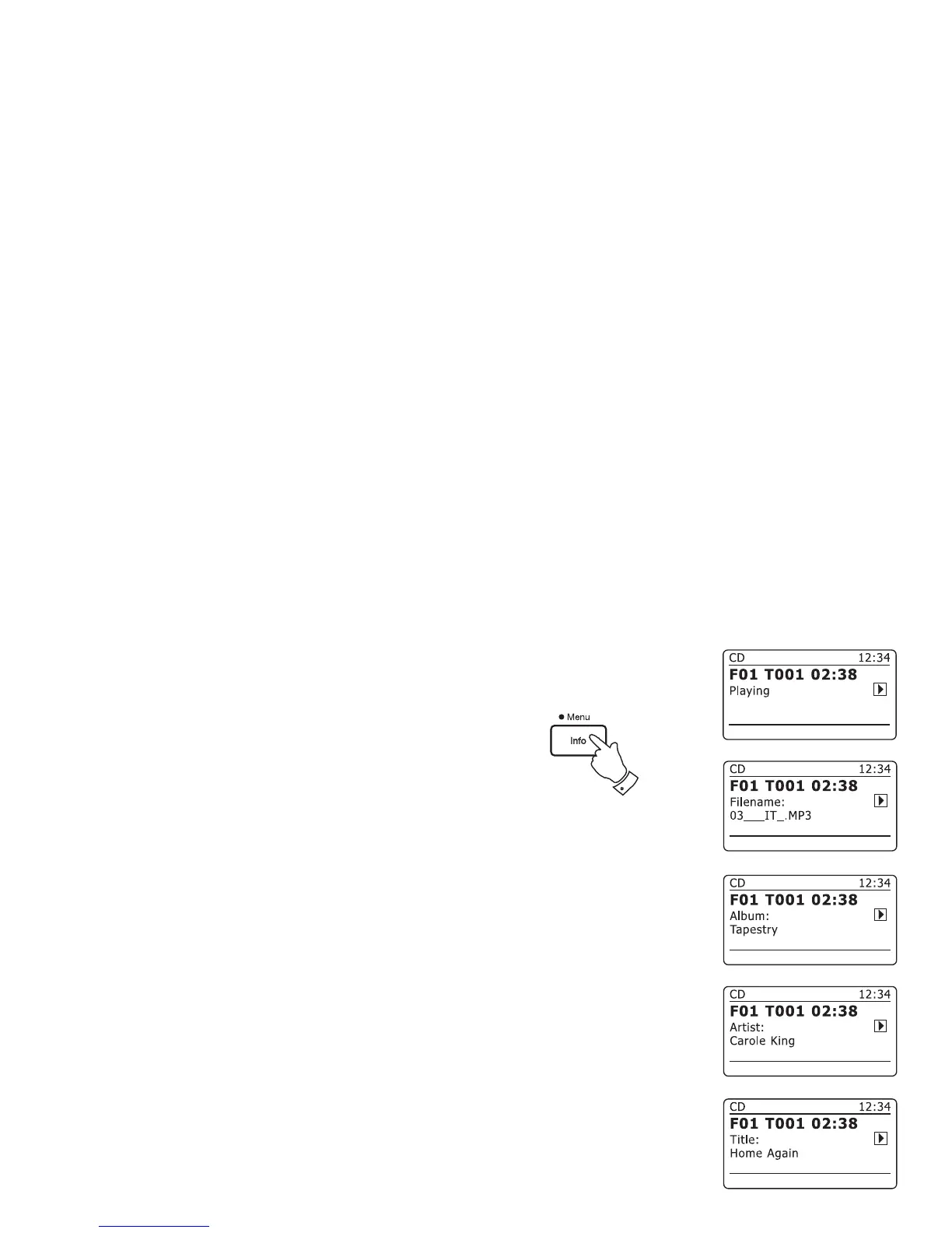 Your radio has a range of display options when in MP3 / WMA CD mode.
