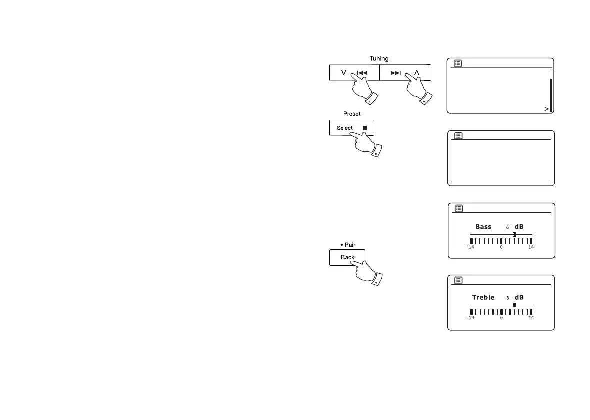 4. To adjust the treble level press the Menu Up or Down buttons until 'Treble'