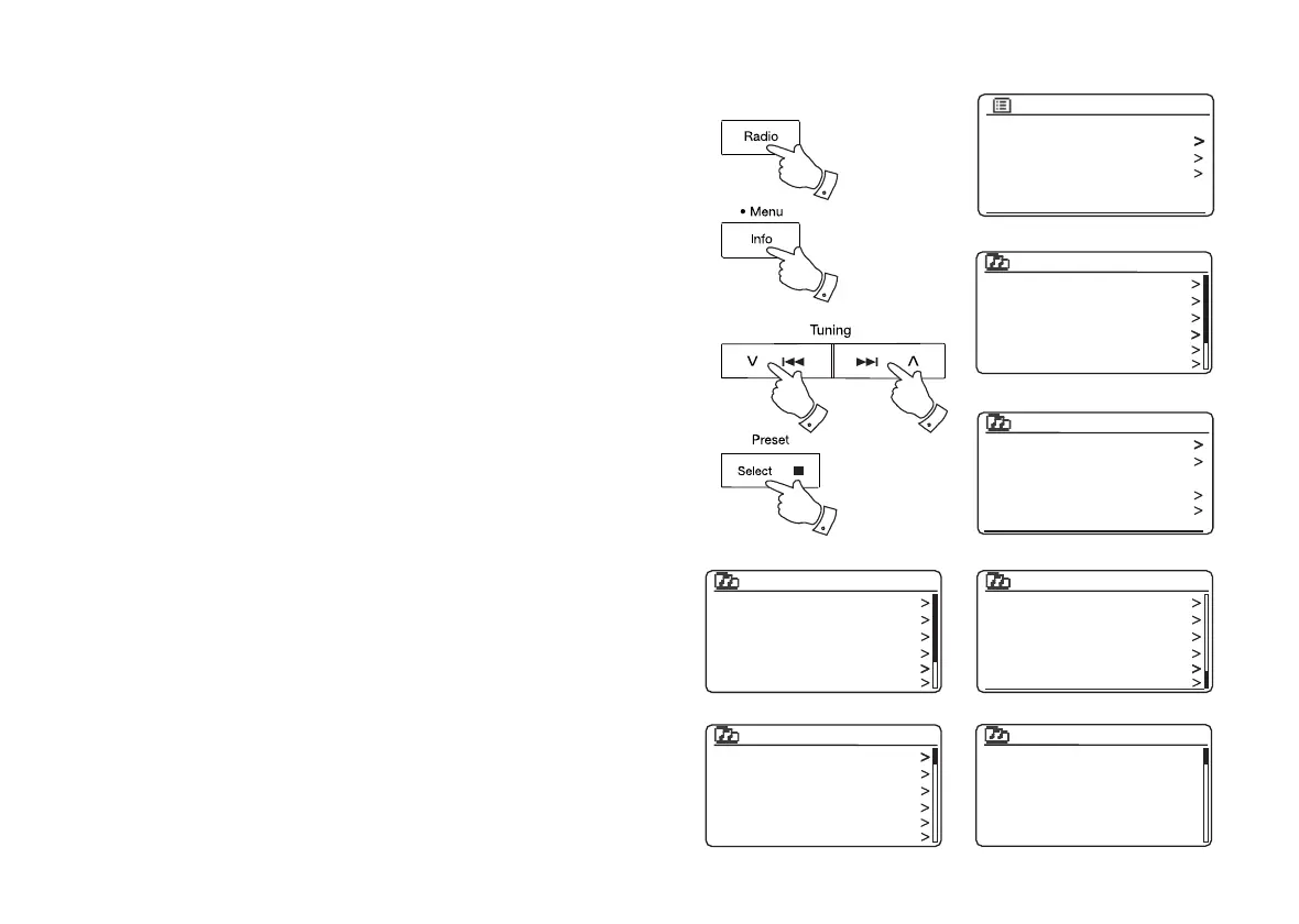 2. Press and hold the Menu button to enter the main Internet Radio menu.