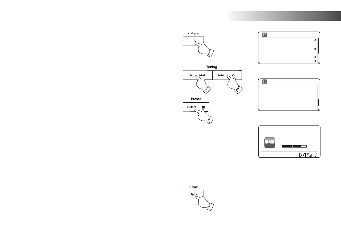 4. Press the Menu Up or Down buttons to choose the required DAB