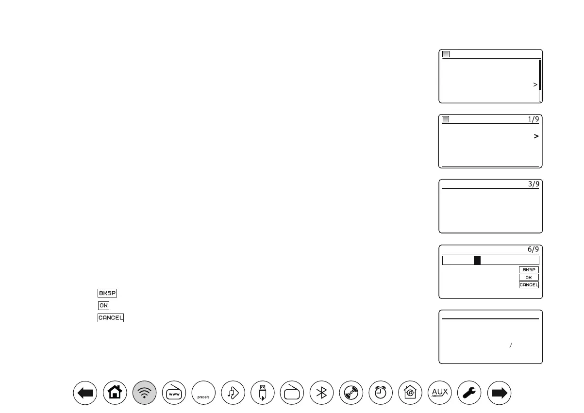 When entering numbers, the SSID or the WiFi pass key, the three controls on the right-hand side of the