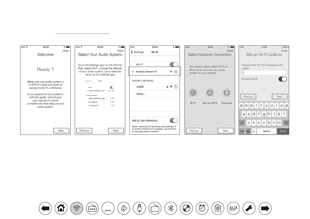 The UNDOK app has a setup wizard to help congure suitable audio devices to connect to your home WiFi network.