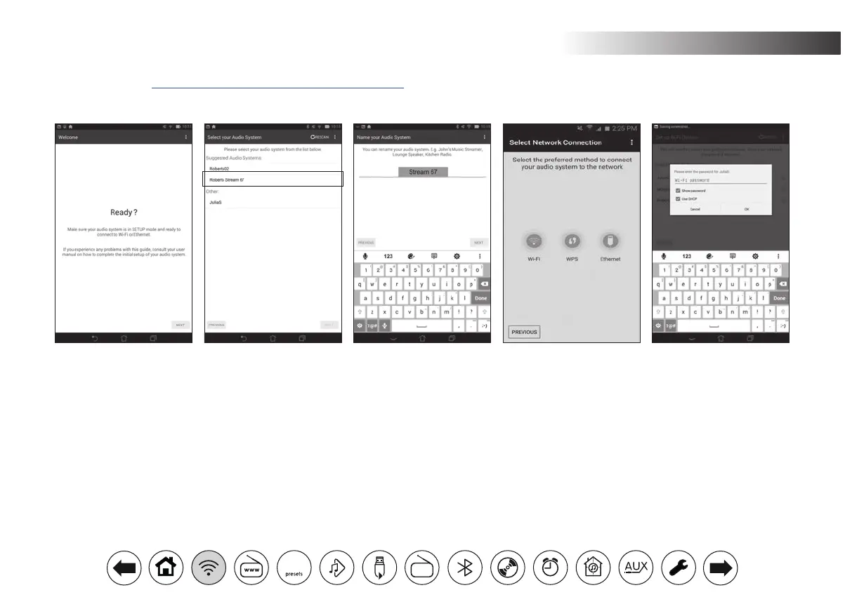 The UNDOK app has a setup wizard to help congure suitable audio devices to connect to your home WiFi network.