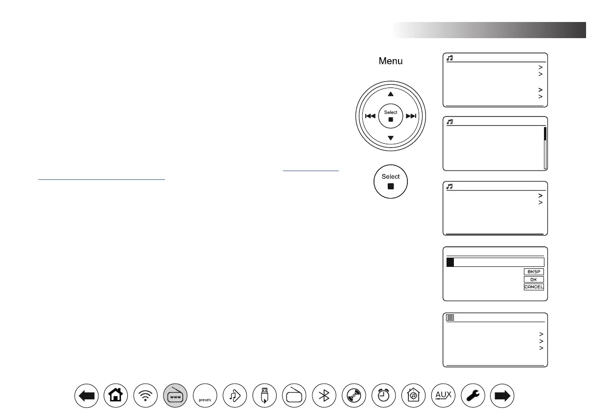 2. The display will then show a list of the last ten Internet radio stations or podcasts.